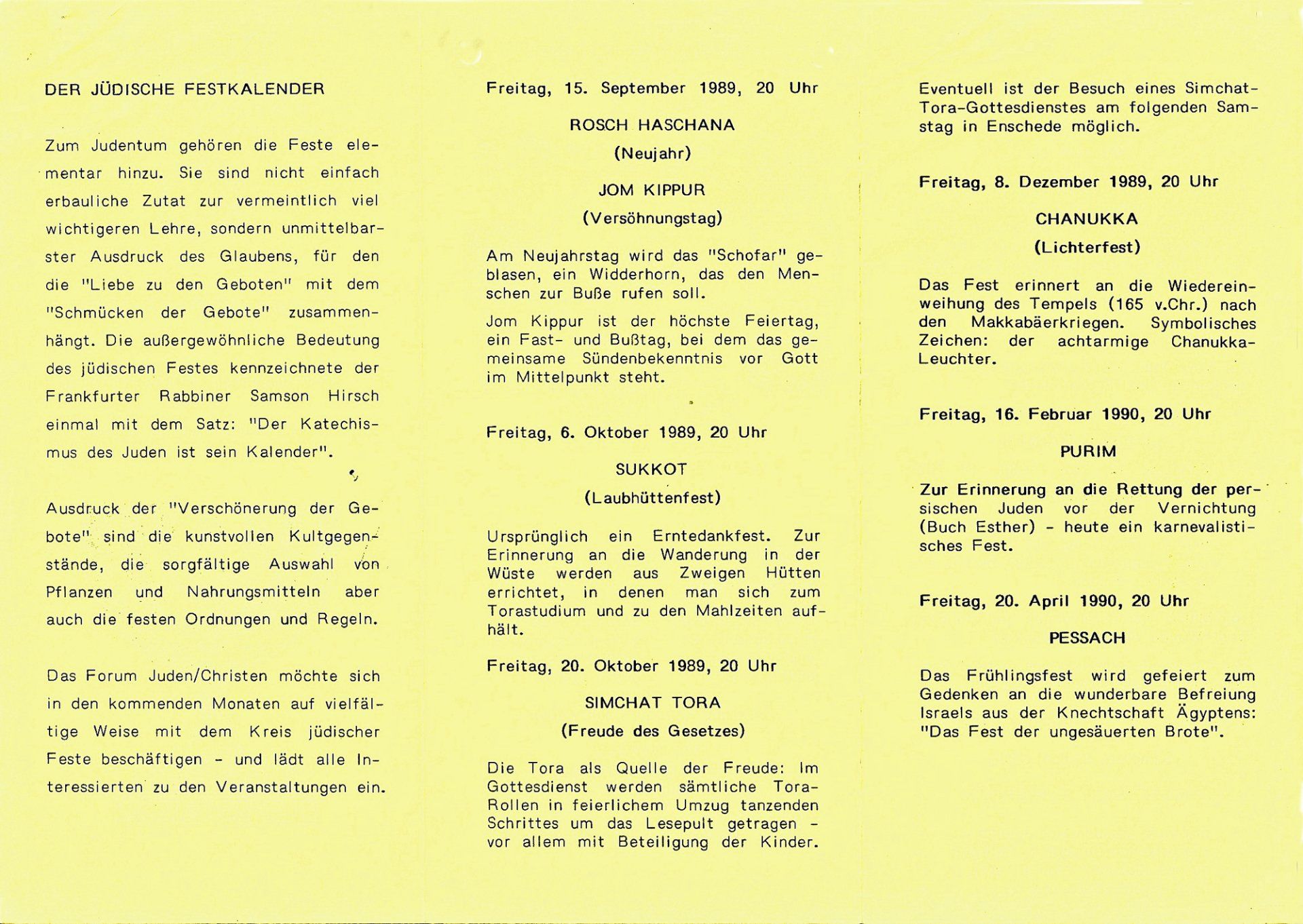 Das gedruckte Programm der Woche der Brüderlichkeit 1988 setzt bereits markante Themen, die die Arbeit des Forums weiterhin bestimmten.
